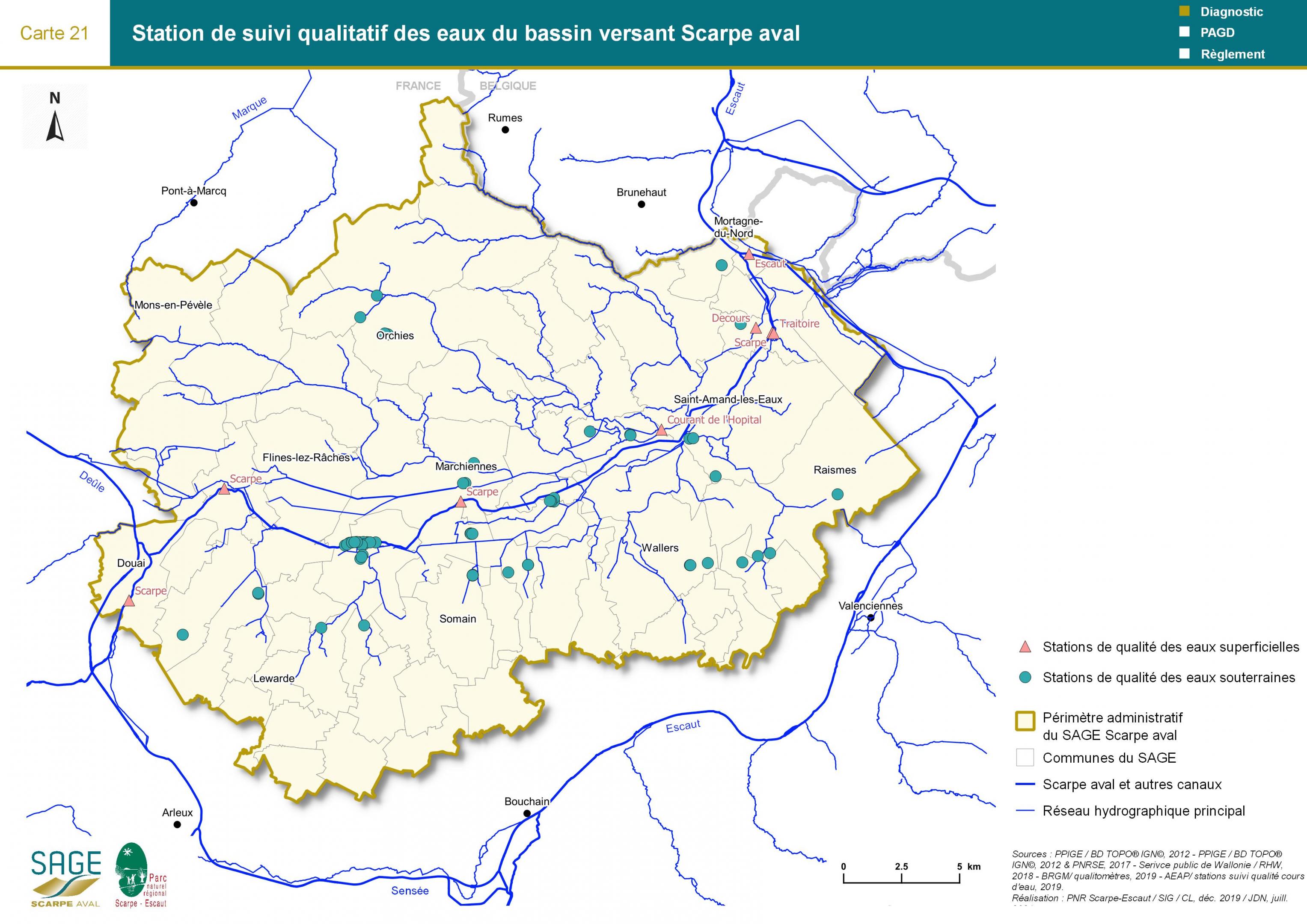Etat des lieux - Carte 21 : Station de suivi qualitatif des eaux du bassin versant Scarpe aval