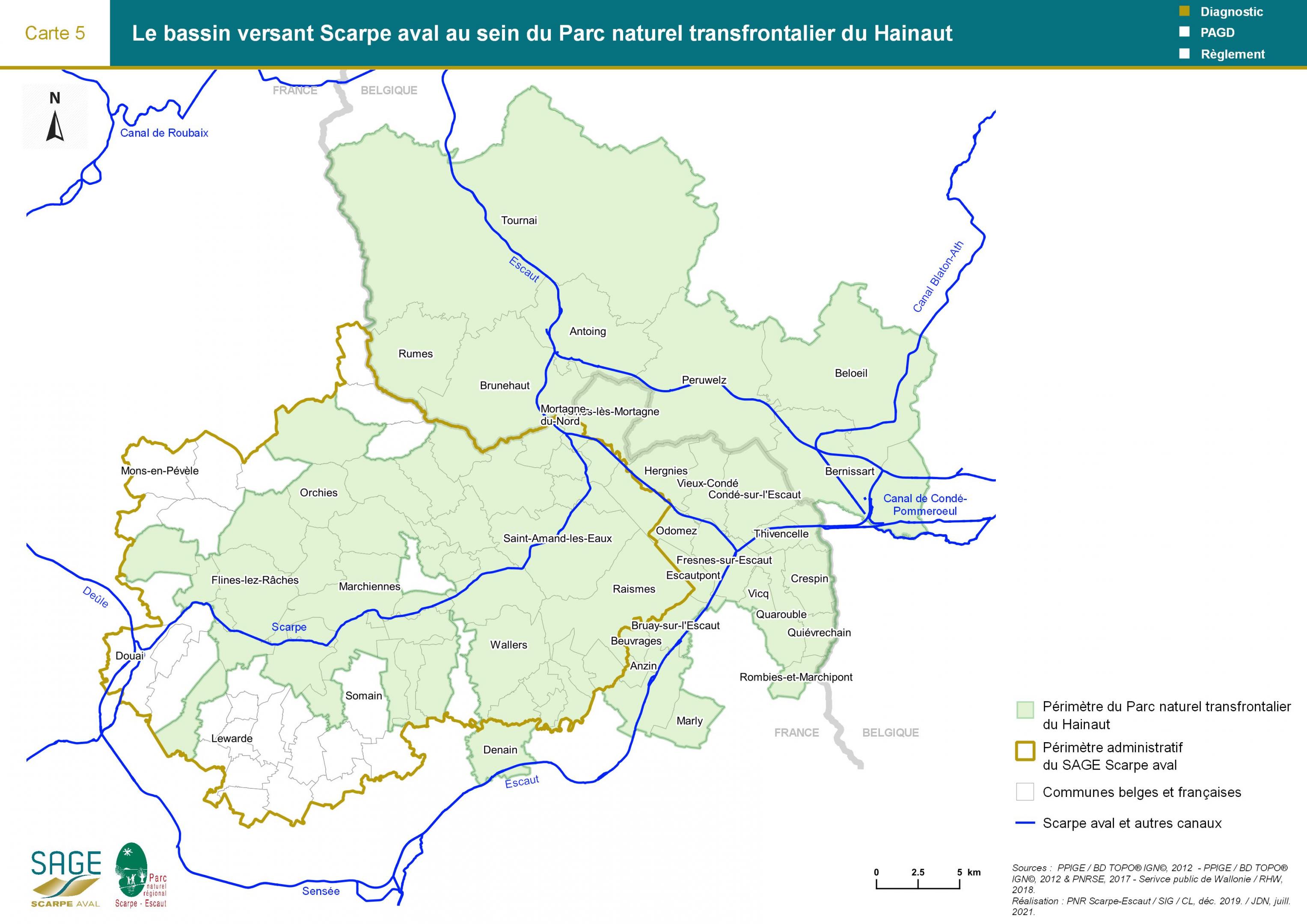 Etat des lieux - Carte 5 : Le bassin versant Scarpe aval au sein du Parc naturel transfrontalier du Hainaut