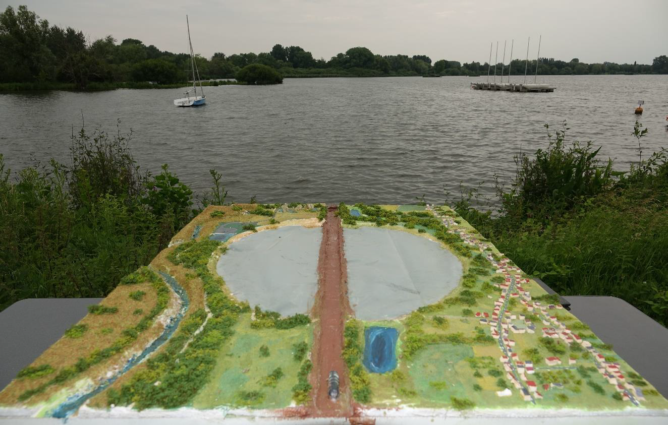 Cette maquette est conçue pour expliquer la formation de certaines zones humides caractéristiques de notre région et leur rôle dans la lutte contre les inondations.